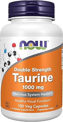 NOW Supplements, Taurine 1,000 mg, Double Strength, Nervous System Health, 100 Veg Capsules