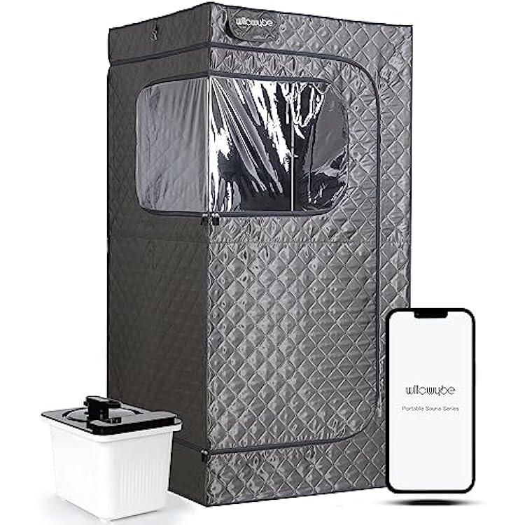 WILLOWYBE Portable Steam Sauna with Bluetooth Control, 4L KingPower Steamer, Body Tent, Foldable Chair | Personal Home Spa Night Grey